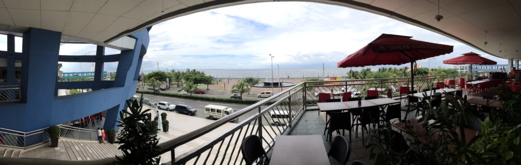 夕方、おいしいフィリピン料理の夕食をとりながら日没を待ちましたが・・・。