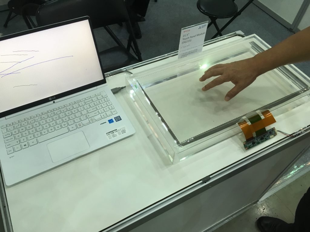 これは、ガラスに「Crystouch」を貼合せし、FPC部からタッチパネル用の基板を通して、PCに繋げてます。