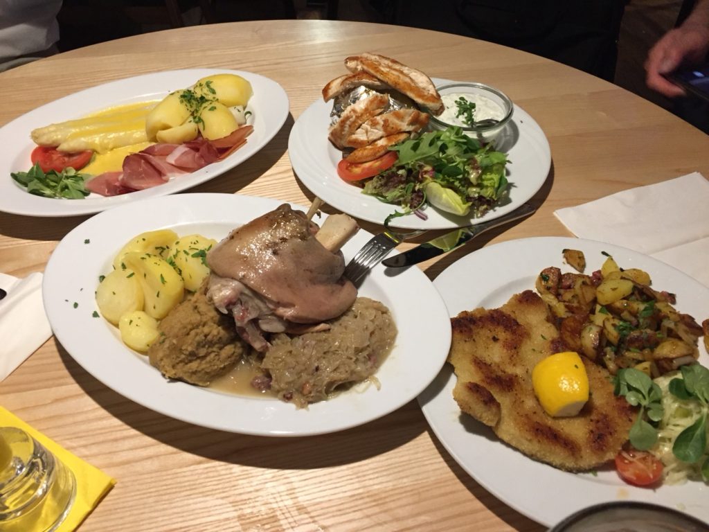 また豚肉を使った料理が多く、シュニッツェル(トンカツ風)やシュヴァイネハクセ(豚のスネ肉)はとても美味です!