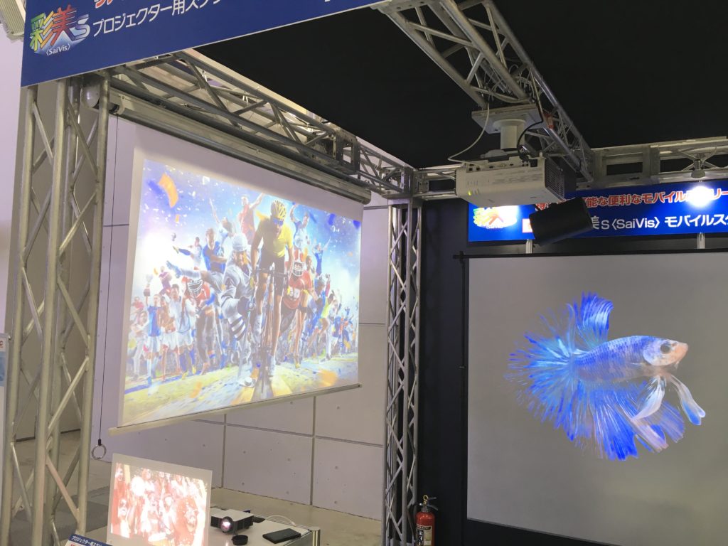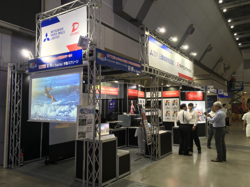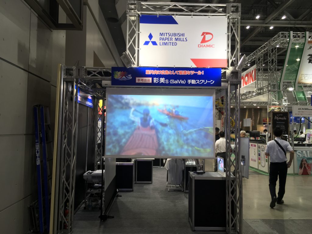 三菱製紙・ダイヤミックブースでは、インクジェットメディアの他、プロジェクター用スクリーンフィルム『彩美s<SaiVis>』も出展しています。