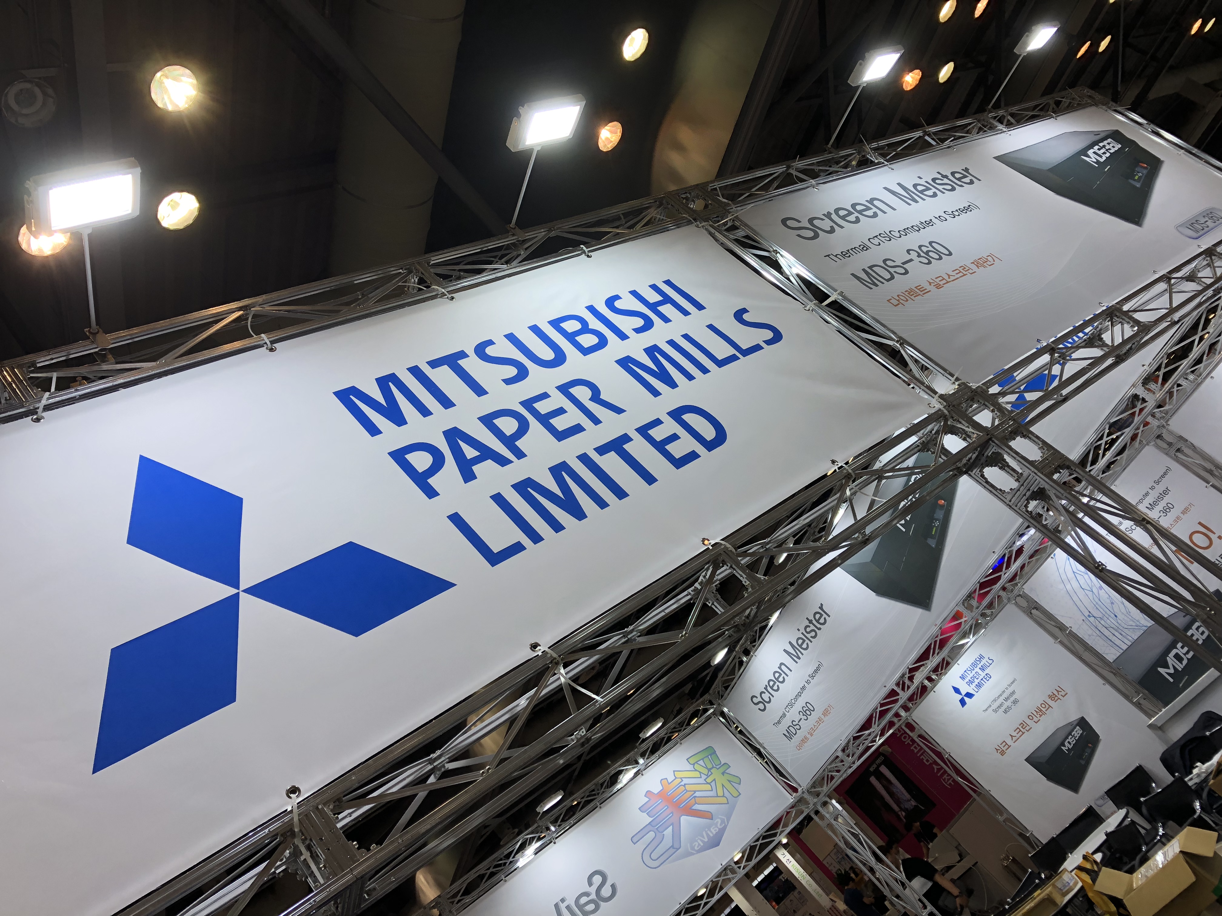 本日は朝から雲ひとつない晴天に恵まれ、土曜日ということもあって家族連れの方々もチラホラ。三菱製紙ブースには会期中最も多数のお客様にお越しいただきました。カムサハムニダ〜‼︎