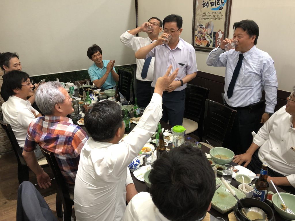 最終日の撤収作業を終えてから、お客様や韓国現地の販売店様と一緒に楽しい打ち上げを行いました。