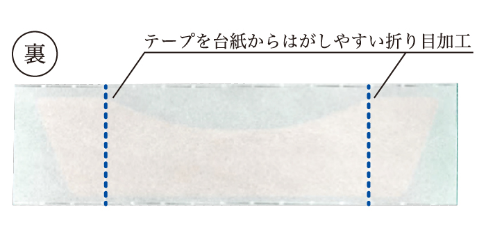 ② 折り目をはく離紙側に折り込み、テープの端部を剥がす。